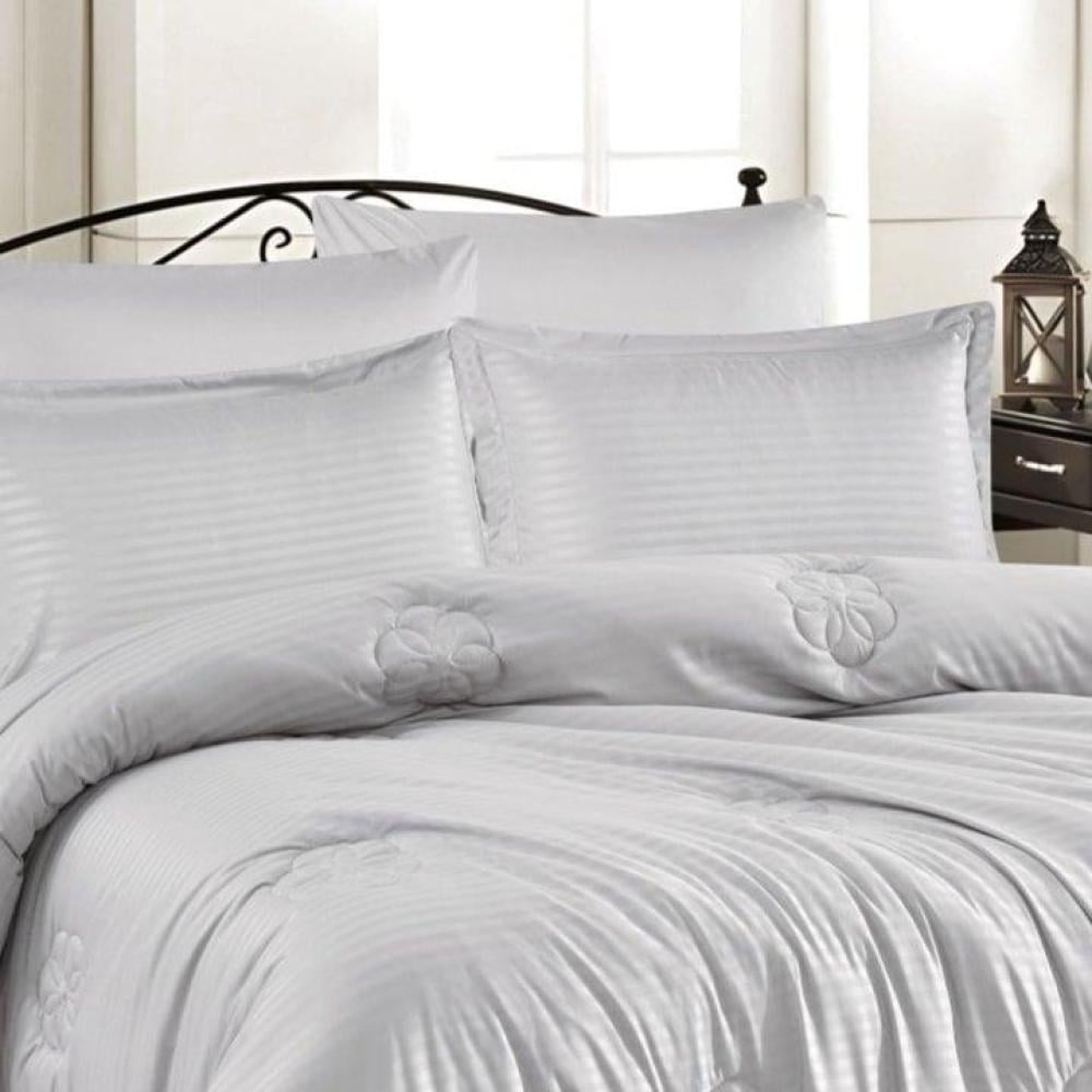 🌙 طقم مفرش بخطوط ساتان فاخرة – Calvo Home | CREMAاكتشف توازن الأناقة والبساطة مع طقم المفرش CREMA من Calvo Home، بتصميمه المخطط الراقي وتطريزات الزهور الناعمة التي تضيف لمسة مريحة وفاخرة لغرفة نومك.