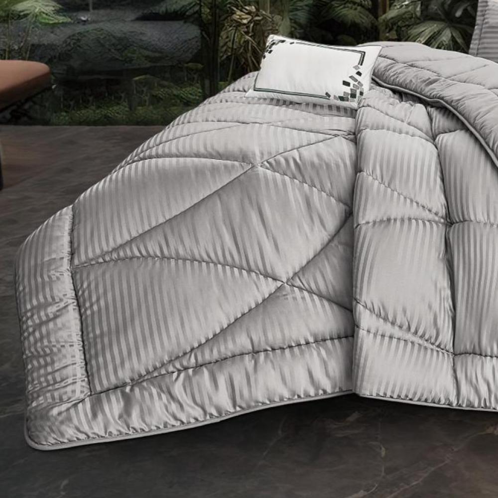 - لحاف فاخر بملمس ناعم وتدرجات مخططة أنيقة