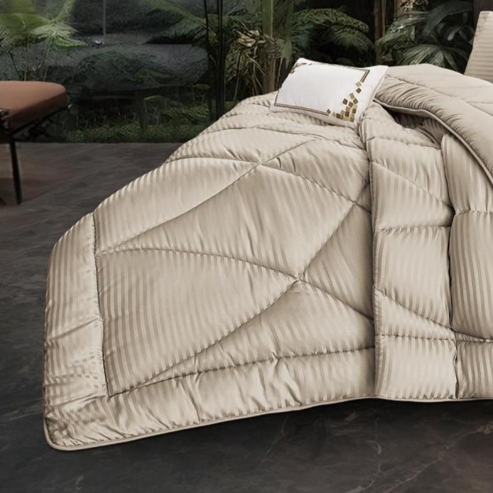 - لحاف فاخر بملمس ناعم وتدرجات مخططة أنيقة