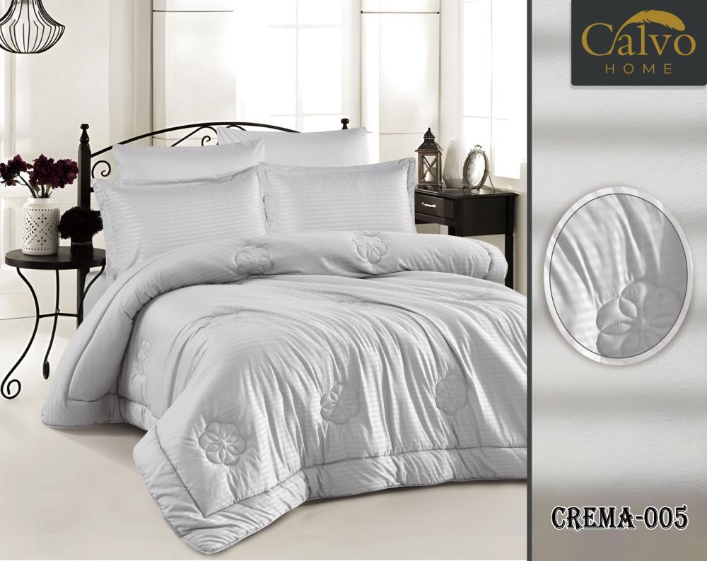 🌙 طقم مفرش بخطوط ساتان فاخرة – Calvo Home | CREMAاكتشف توازن الأناقة والبساطة مع طقم المفرش CREMA من Calvo Home، بتصميمه المخطط الراقي وتطريزات الزهور الناعمة التي تضيف لمسة مريحة وفاخرة لغرفة نومك.